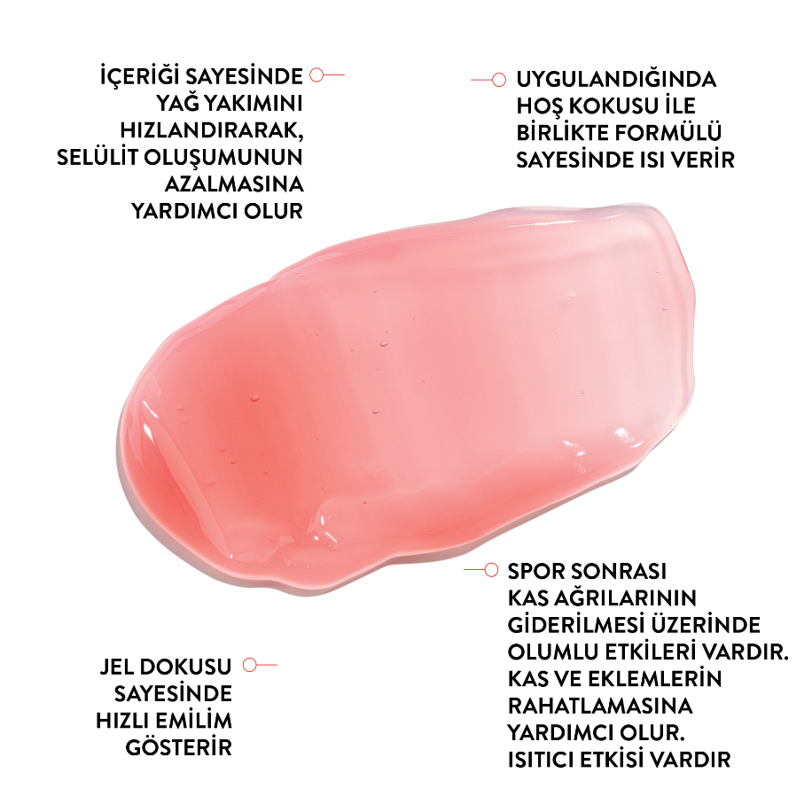 Der Brennnessel-Extrakt in der Formel erhöht die Durchblutung, während Ingwer-Extrakt die Hautregeneration unterstützt und Koffein zur Straffung der Haut beiträgt. Bei Anwendung vor dem Sport auf den gewünschten Bereich hilft die Creme, die lokale Fettverbrennung zu fördern. Nach dem Sport hat sie positive Effekte auf die Linderung von Muskelkater.