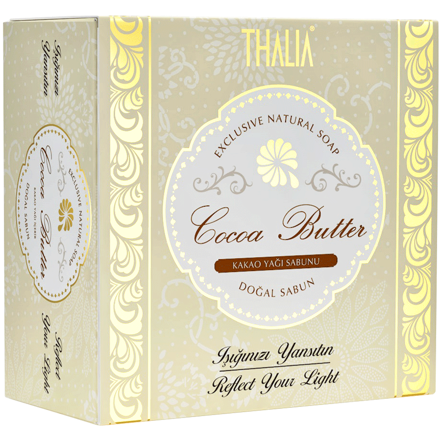 Thalia Kakaobutter Seife versorgt trockene Haut mit Feuchtigkeit. Die Seife reinigt sanft gereizte Stellen und pflegt mithilfe von Kakaoöl und Sheabutter die trockene Haut bis in die Tiefe.