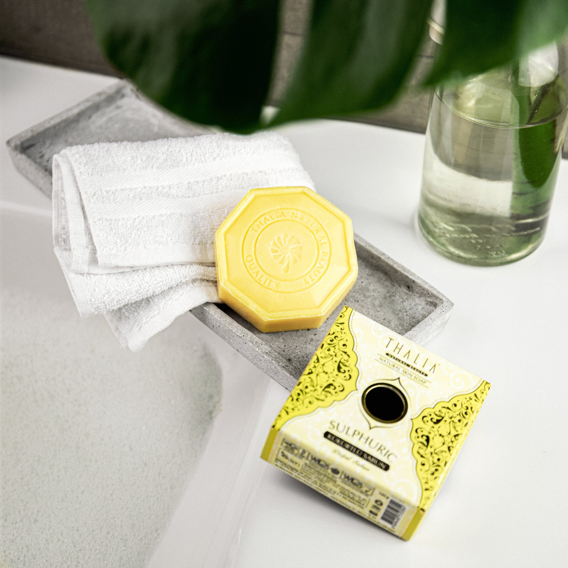 Thalia Schwefelseife ist mit schwefelhaltigen Extrakten angereichert und gleicht den Ölgehalt der Haut aus, bei fettiger und unreiner Haut. Sie wirkt antimikrobiell und unreinheiten werden ausgetrocknet, abgestorbene Hautzellen effektiver abgetragen und die Poren befreit