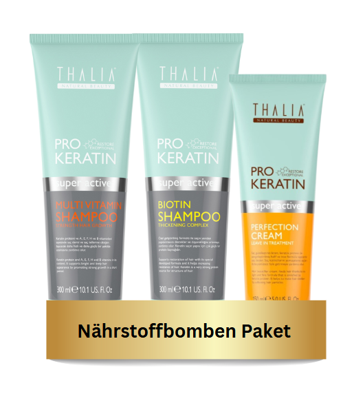 1x Thalia Pro-Keratin Multivitamin Shampoo hilft, durch Sauerstoffübertragung von Keratin Proteinen und A-, E-, F-, H- und B-Vitaminen, das Haar schneller und stärker wachsen zu lassen, fördert also schnelles Wachstum und unterstützt dabei, das strahlende und lebendige Aussehen der Haare. Es eignet sich, bei der Behandlung von dünnem und mattem Haar.
